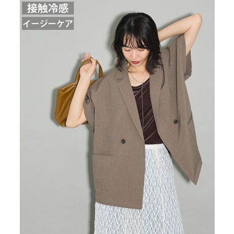 #フレンチスリーブ#ジャケット#麻調#接触冷感#イージーケア#ダブルボタン#リネンライク#夏#秋#大人カジュアル#きれいめ#羽織り#体型カバー #着回しアイテム#オフィス#通勤