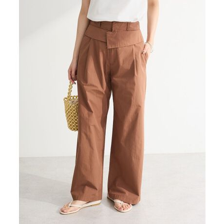 ダブルウエストのレイヤード風デザインが洒落感のあるパンツ。タックを寄せたゆとりのあるシルエットでレッグラインを拾いにくく、自然とスタイルアップを後押しします。さらりと肌離れの良い素材感で快適な穿き心地も魅力的。トップスイン・アウトのどちらでもサマ見えするおすすめのアイテムです。透け感[なし]
