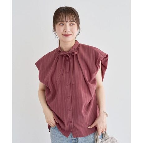 爽やかでシックなストライプ柄生地で仕立てたブラウス。ふんわりとしたフレンチスリーブにボウタイリボンを合わせ、一枚で上品に着映えるデザインに仕上げました。やや長めの着丈が腰回りをカバーして、自然とスタイルアップを後押し。合わせ方次第でオン・オフどちらでも活躍するおすすめのアイテムです。透け感[ややあり]