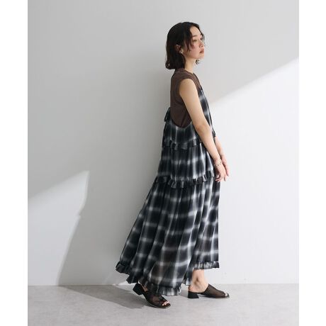 ニュアンスのあるオンブレーチェック柄が今年らしいキャミソールワンピース。2段の切り替えを入れたティアードデザインで、ふんわり広がるフェミニンなシルエットを表現しました。長めの着丈ながらも軽軽やかな素材で着心地も抜群。合わせるトップス次第で幅広く活躍してくれるおすすめのアイテムです。透け感[ややあり]