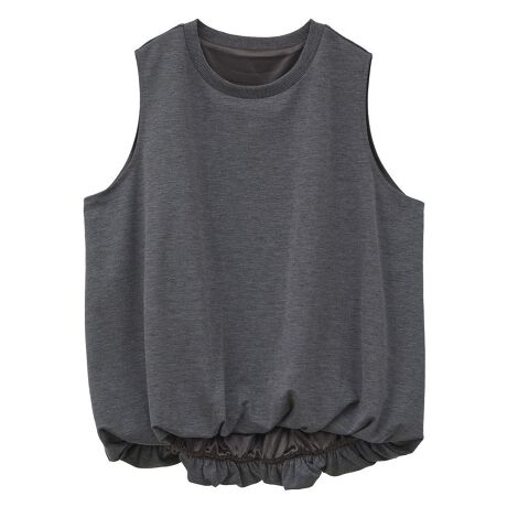 肌触りのさらりとした素材感で仕立てたノースリーブプルオーバー。裾にゴムを施したふんわりバルーンシルエットがフェミニンな雰囲気を演出します。ゆとりあるサイズ感の快適な着用感も魅力的。どんなボトムとも着合わせしやすく、合わせ方次第でロングシーズン活躍するおすすめのアイテムです。透け感[ややあり]