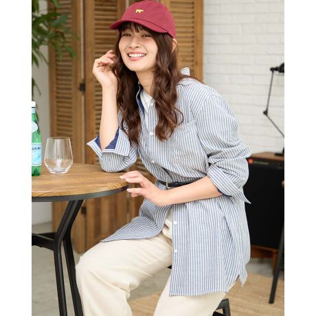 Wガーゼストライプシャツ