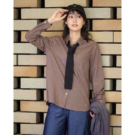 落ち着いたカラーのチェック柄素材を使用しています。ポケットのデザインが特徴的です。オールシーズンに対応でき、インでもアウトでも着こなし自在なシャツになっています。