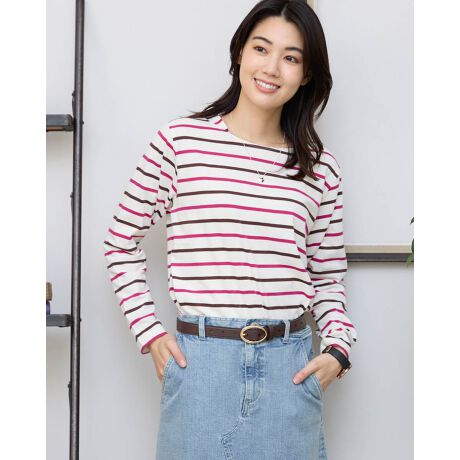 やわらかく扱いやすいTC天竺素材を使った、ボーダー柄の長袖Tシャツ。ベーシックなセットインスリーブで着やすく、1枚でも重ね着でも活躍します。