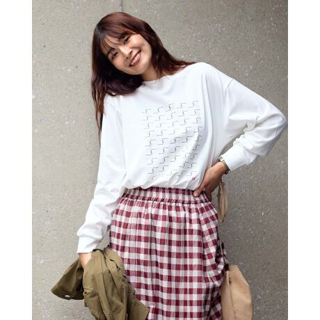 オーガニックコットンを使用したロングTシャツです。GBアイコンのくまを並ベて千鳥柄に見えるよう遊び心のある柄をプリントしました。ゆとりのある大きめシルエットです。
