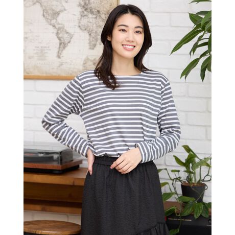 やわらかく扱いやすいTC天竺素材を使った、ボーダー柄の長袖Tシャツ。ベーシックなセットインスリーブで着やすく、1枚でも重ね着でも活躍します。