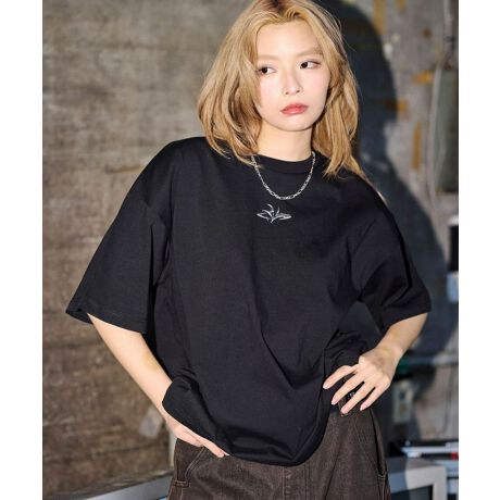 ・胸元には立体的なメタルパーツで表現されたロゴを配し、エッジの効いたアクセントをプラス。