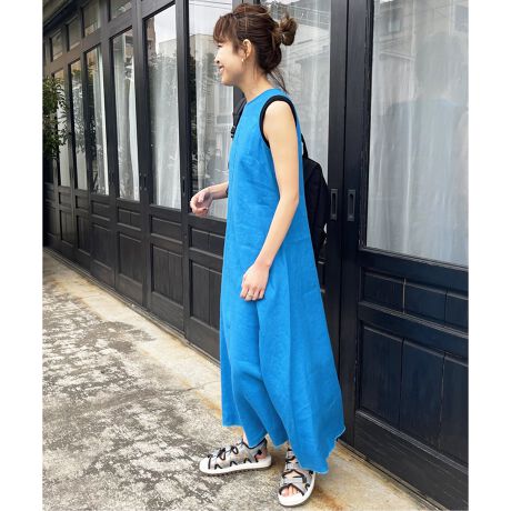 デイリーに着回しやすい旬のアメスリワンピースは、25番手のリネン糸100%を使った表情豊かな素材が魅力。