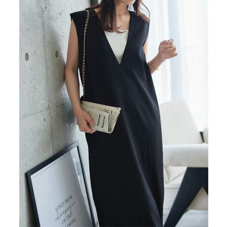 深VネックにIラインフォルムのシンプルさが洗練された印象に。