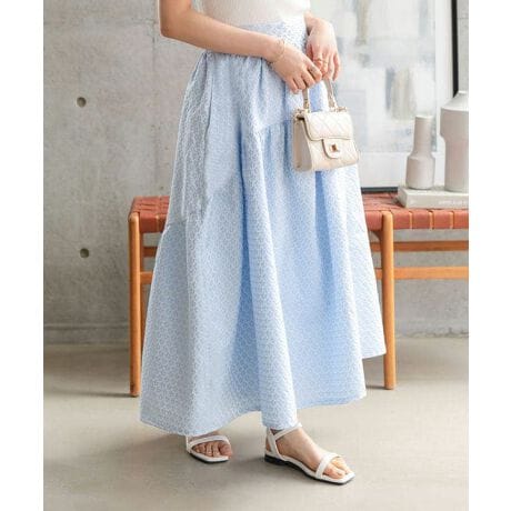 ふんわり広がるシルエットが目を引く、ラウンドギャザー切り替えジャガードスカート。