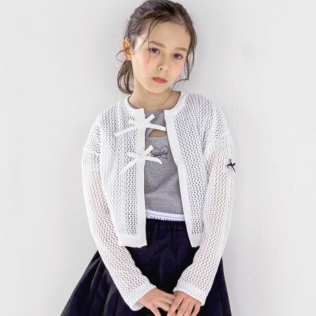 大きいリボンがついて目を惹く女の子用カーディガン。