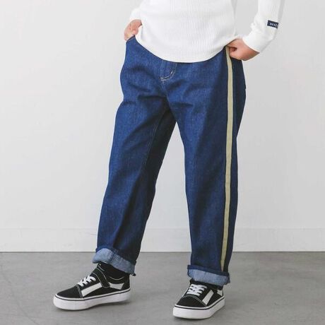 サイドに入ったラインがトラックパンツ風で格好いい男の子用ワイドデニム。
