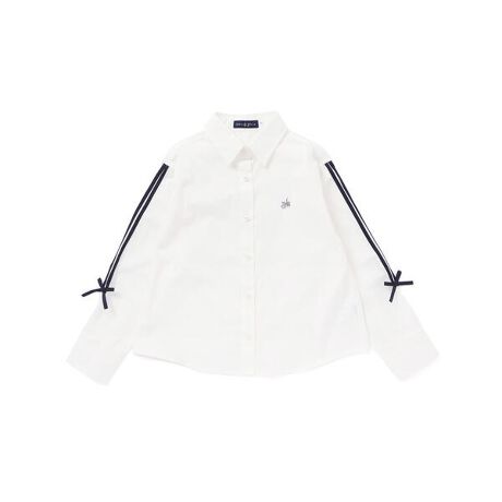 袖に入ったラインにリボンがONされた女の子用長袖シャツ。