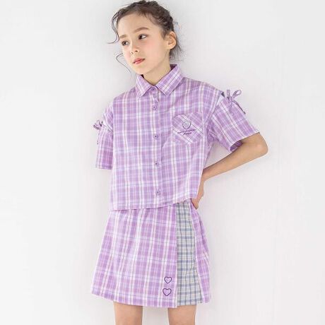 チェック柄半袖シャツ+プリーツスカパンセット(110~150cm)