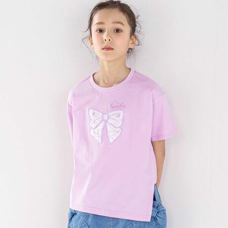 アシメトリーBIGリボンプリント天竺半袖Tシャツ(110~150cm)