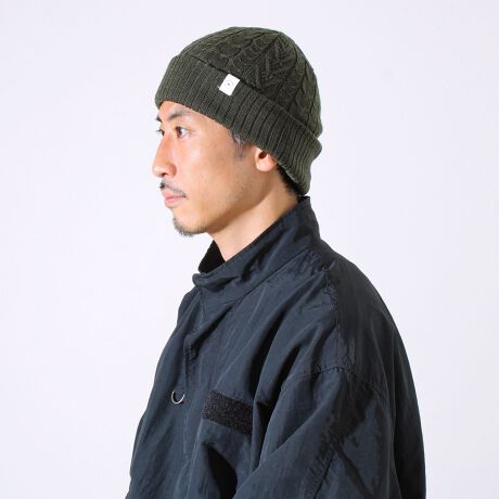 表裏で楽しめる、リバーシブル仕様の別注ケーブルニット帽