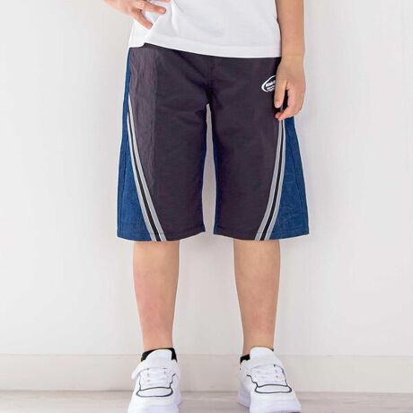 ライトオンスデニムとタフタの切り替えが個性的な男の子用5.5分パンツ。