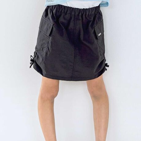 シャーリングの裾にはリボンがついて女の子らしい可愛さがあります。