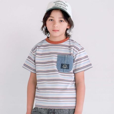 デニムポケットマルチボーダー天竺半袖Tシャツ(110~150cm)