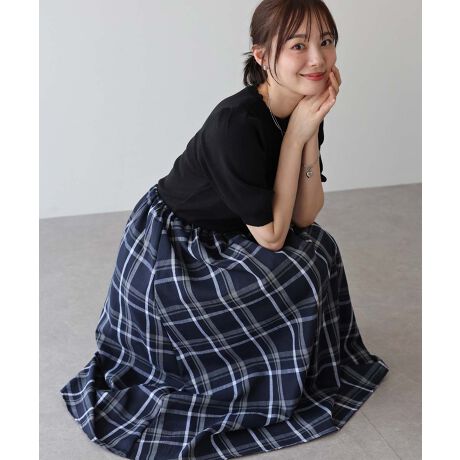スカート部分:チェック柄の透け感のある綿素材