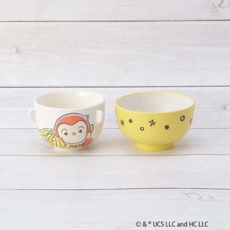 「おさるのジョージ」がデザインされたミニ汁椀茶碗セットです。