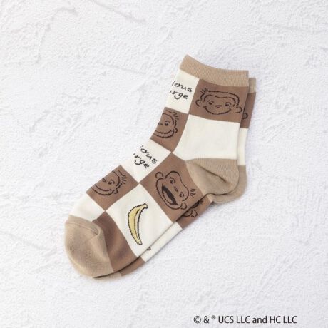 ◆【ワンズテラス限定】おさるのジョージ チェック柄クォーターソックス