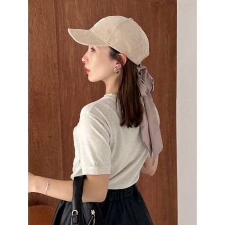 <b>【取り外しできる大きめのサテンリボンが華やか。リッチな立体刺繍入りロゴキャップ】</b>