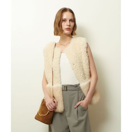 トレンドのファージレが、今年は2パターンの毛足の長さのファーをコンビにしたミドル丈で登場。