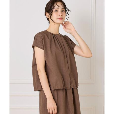■デザイン繊細な凹凸感が魅力のサッカー素材で仕立てた、涼やかで上品な印象のブラウス。ふんわりと広がるバルーンシルエットは、裾のドロストでフォルムを自在にアレンジでき、スタイリングにさりげない変化を添えます。ネックラインに寄せたギャザーが柔らかな表情を引き立て、肩に自然に馴染むラインで上品な印象に。羽織りとしても着用できる汎用性の高さに加え、シームポケットを備えた実用性も嬉しいポイント。ベスト風のレイヤードスタイルで、トレンド感とモードな洗練を叶えるアイテムです。■素材夏の定番素材として人気のサッカー生地を使用。肌に張り付きにくく、涼やかな着心地が魅力です。細やかなチェック柄が無地のように見える上品なと、無地タイプ(ブラック)との2パターンを展開。ダークカラーが落ち着きのある大人の印象。・水洗い可・裾裏アジャスター調節可同素材のスカート品番:7052152872■サンプル撮影商品画像の商品はサンプルです。実際の商品とはサイズや色味、素材、デザイン等の仕様が若干変更になる場合がございます。■カラーについては、可能な限り実際の商品に近いカラーで撮影をおこなっておりますが、照明の関係により実際の製品とは色味が違って見える場合があります。またパソコン・スマートフォンなどの環境により、若干製品と画像のカラーが異なる場合もございます。現物と画像のカラー差異については返品理由となりませんので、予めご了承ください。■サイズ表記はあくまで目安となります。
