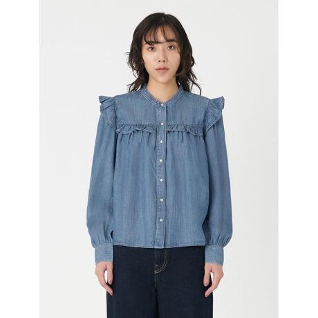 ちょっとフェミニンでウエスタンなテイストが魅力のブラウスがデザインされました。クラシックなボタンアップのフロント、ゆったりとしたフィットに仕上げたデザインで、ラッフルのディテールとフロントのプリーツ入りがポイントです。ブランドらしいデニム生地を使用したこれからの季節にピッタリの1枚です。