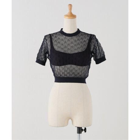 【NICENICE MOMENT/ナイスナイスモーメント】LACE KNIT TOP:インナー付きニ