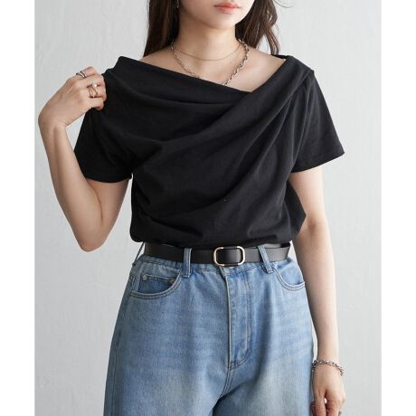 シンプルなのにどこか印象に残る綿天竺半袖ドレープTシャツ。