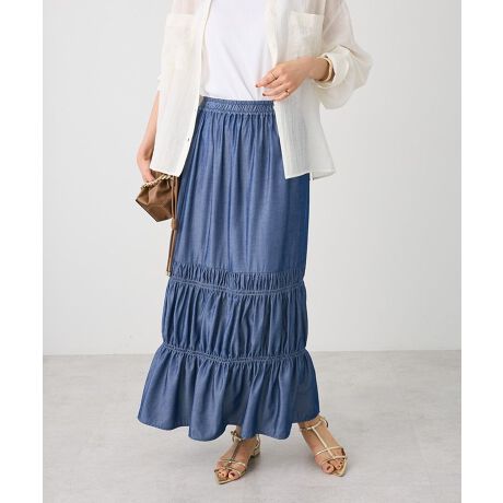 *揺れ感が映える、大人のティアードスカート。動くたびにふんわり揺れる、ティアードデザインが目を引く主役級スカート。