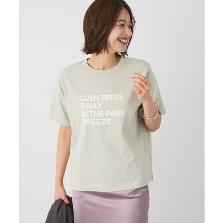 胸元には「VERDANT=緑豊かな」というメッセージをさりげなく添えたロゴデザインと、「LUSH TREES SWAY IN THE PARK BREEZE=公園の風に茂る木々が揺れる」のメッセージをあしらったタイプの2柄をご用意。