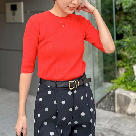 ・ベーシックで着回しやすいリブの5分袖プルオーバー
