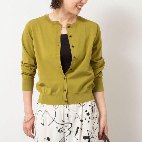 《手洗い可能》《アンサンブル対応》天竺クルーネックカーディガン