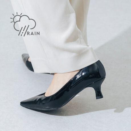 雨の日も晴れの日も履ける晴雨兼用アイテム。通勤通学にはもちろん、オケージョンシーンやセレモニーシーンでもお使いいただけるパンプス。5cmの高さなので、程よくスタイルアップができ、普段ヒールが苦手な方にもおすすめです。