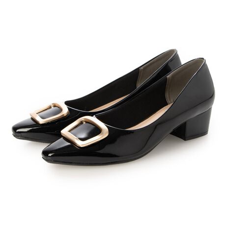 【25秋冬新作】 【晴雨兼用・クッション入り】ゴールドバックル4.5cmパンプス IZ5771
