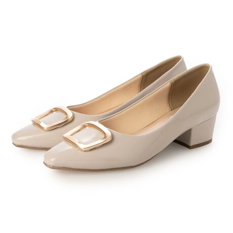 【25秋冬新作】 【晴雨兼用・クッション入り】ゴールドバックル4.5cmパンプス IZ5771