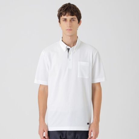 サッカー地を使用したポロシャツ。生地の凹凸感により肌離れが良く、清涼感あるアイテムに仕上がっています。ジャケットとの相性も良いボタンダウンカラーを採用。キレイ目スタイルにも合わせやすいブラックレーベルならではのポロシャツです。