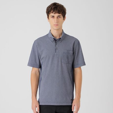サッカー地を使用したポロシャツ。生地の凹凸感により肌離れが良く、清涼感あるアイテムに仕上がっています。ジャケットとの相性も良いボタンダウンカラーを採用。キレイ目スタイルにも合わせやすいブラックレーベルならではのポロシャツです。