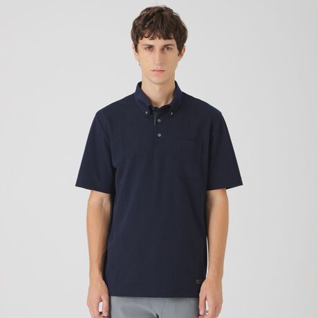 サッカー地を使用したポロシャツ。生地の凹凸感により肌離れが良く、清涼感あるアイテムに仕上がっています。ジャケットとの相性も良いボタンダウンカラーを採用。キレイ目スタイルにも合わせやすいブラックレーベルならではのポロシャツです。