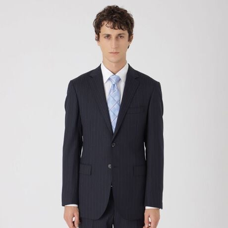 【さりげないカラーピンストライプが特徴的なスーツ】