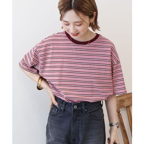 レトロな配色ボーダーが目を惹くTシャツ。ナチュラルな着心地のコットン100%素材で仕立て、ご家庭でお手入れがしやすいのもポイントです。ゆったりとしたワイドシルエットが華奢なボディラインを演出。カジュアルに合わせるのはもちろん、トップスインのスタイルやフェミニンなスカートを合わせた着こなしもおすすめです。透け感[なし]