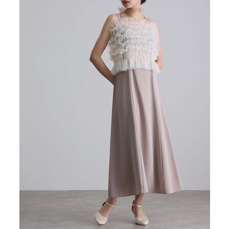 チュールをたっぷりと使用し、透け感にこだわったトップスが華やかでエレガントな印象に。