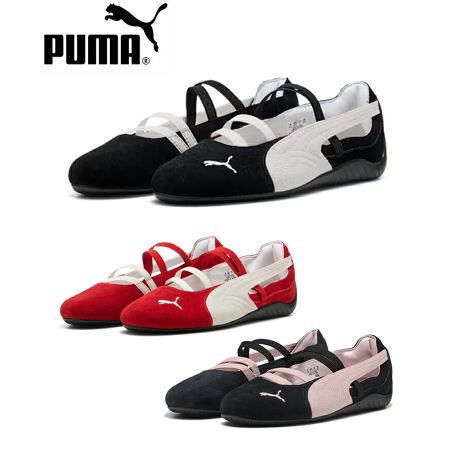 バレエからインスパイアされたエレガンスさと元来のレーシングDNAを融合させたスピードキャットバレエは、スウェードのアッパー、刺繍のプーマキャット、ぴったりとフィットするゴムバンドが特徴です。