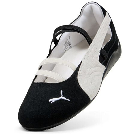 バレエからインスパイアされたエレガンスさと元来のレーシングDNAを融合させたスピードキャットバレエは、スウェードのアッパー、刺繍のプーマキャット、ぴったりとフィットするゴムバンドが特徴です。
