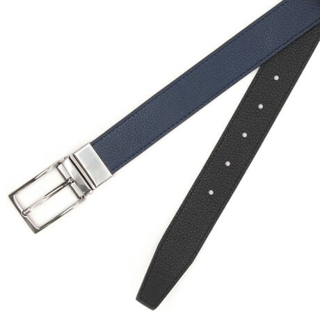 [型番:JLMB4380]フランス製のソフトなシボのエンボスレザーを使用したリバーシブルのベルトです。それぞれ、ブラック×チョコ、ネイビー×ブラックのリバーシブル仕様になっており、コーディネートやシーンにあわせて幅広く活躍します。また、バックル部分にはランバンコレクションのロゴをレーザー彫りで表現し、大人の装いを一層引き立てるデザインに仕上げました。特別な日のギフトや、自分へのご褒美にもおすすめのアイテムです。
