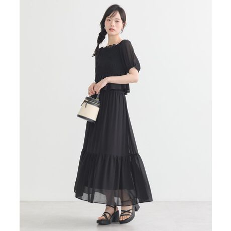フロッキードット×シアー素材でフェミニンに仕立てたセットアイテム。シャーリングを贅沢にあしらったブラウスとふんわり揺れるAラインのスカートがトレンドライクなデザインです。それぞれ単品での着用も出来るマルチWAY仕様なのもポイント。合わせるアイテム次第でカジュアルにもきれいめにも決めてくれる着回し力抜群のアイテムです。