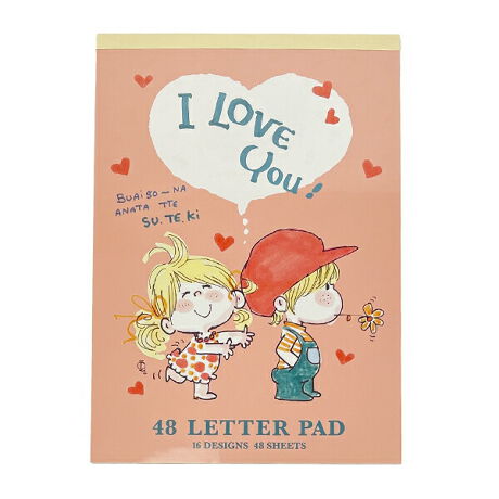水森亜土のレターパッドです。表紙は亜土ちゃんらしい可愛いカップルデザイン♪48シートあるのでお手紙やメモ書きなどたくさん使えます!16デザインもあるので亜土ちゃん好きの方にはたまりません☆彡